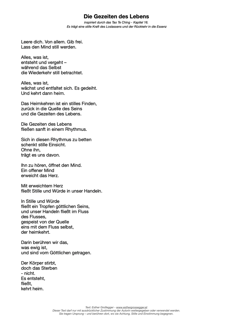 Inspiriert duch Kapitel 16 des Tao Te Ching: