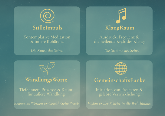 Diese vier Räume bilden das Herz meines Wirkens – lebendige Felder,